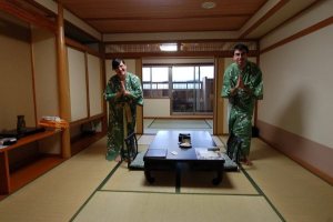 Les habitacions d’estil japonès que trobem són super maques. I a nosaltres no ens costa res integrar-nos. Aquesta era a Kawachiko. I la finestra donava al monte Fuji.