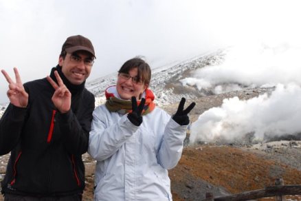 Aquest matí hem agafat un funicular per pujar al cim del Asahidake, la muntanya més alta de l’illa de Hokkaido. Només arribar a dalt ens ha començat a nevar, però el dia ha sigut capritxós i al cap d’una estona ha sortit el sol. Hem fet una ruta a peu durant dues hores contemplant llacs i fumeroles de volcans. Quina pudor a sofre!! Però que espectacular!!!