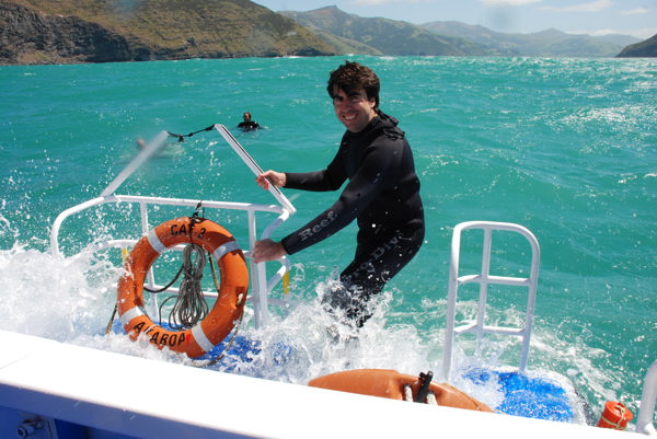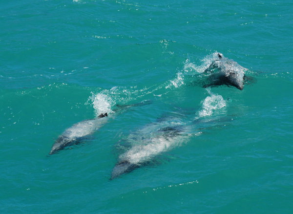 Els dofins de l’espècie Hèctor només es troben en aquestes aigües. Són petits i juganers, i un parell d’empreses del poble, organitzen sortides per poder-te banyar entre ells. Som grups de deu persones com a màxim, i ens porten uns 2 quilòmetres mar endins.