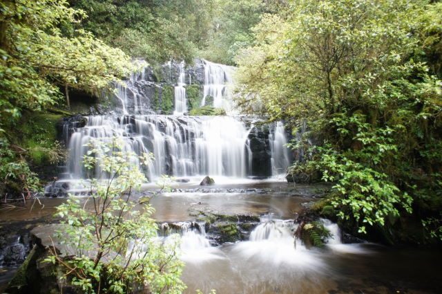 Ha plogut tota la nit i quans ens llevem (7 del matí) encara continua. Però això no ens atura. Fem una excursió fins les cascades de “Purakaunui Falls”. Tot el camí és ple de les típiques falgueres d’aquest país. Encara molles per la pluja, tenen un verd super-intens. Després ens apropem a veure les “Cathedral Caves”, però la marea està pujant i el camí està tallat. Quina ràbia!