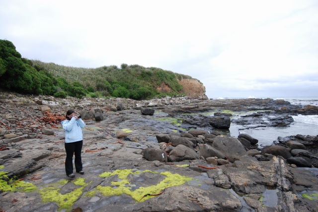 Visitem una platja més, “Curio Bay”. Aquí veiem un pingüí més, i fòssils d’arbres petrificats. Les onades i el vent encara potencien més la solitud de la zona.