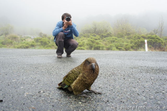 Hem vist els famosos Kea (després dels Kiwis són els ocells més característics de l’illa), i hem muntat un petit espectacle pels turistes: