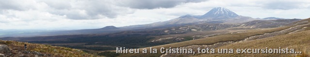 Arribem al Whakapapa Village i decidim fer una mica d’esport. Tot i tenir alguns dels tracks més famosos del món, la nostra forma física no ens permet fer el que voldríem, i finalment ens decidim per la senzilla Ridge Track. És impressionant. Pujem fins a un turonet que ens deixa veure els tres volcans, encara que s’ha començat a tapar el dia i això ens resta la visió completa.