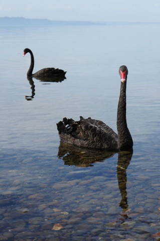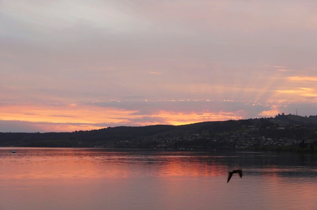 Quan, finalment, hem arribat altre cop a la carretera on tenim la caravana aparcada, enfilem ruta cap a Taupo. Pel camí ens quedem impressionats amb les vistes del llac Taupo. Més que un llac sembla un mar! Ens acompanya a la nostra esquerra durant força quilòmetres. Bé, de fet, és el llac més gran de Nova Zelanda. Fins i tot, hi veiem pescadors amb les seves canyes. En tot el país, i sobretot en aquesta zona, un dels esports més practicats és la pesca. Maco!!