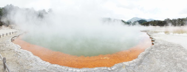 Destaca la passarel.la de fusta arran d’aigua que et porta a la Champagne Pool, una piscina amb uns colors impressionants i on es poden veure bombolles provocades pel diòxid de carboni. Això sí, l’olor a sofre que fa en tot el recinte, t’entra pel nas i no et marxa!