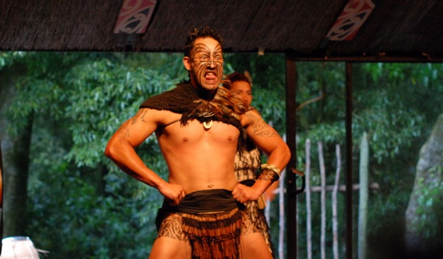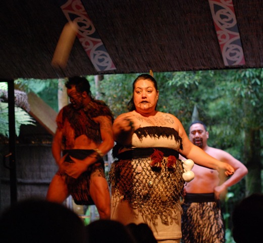 Ens instal.lem al càmping de Rotorua i contractem una de les poques excursions organitzades del nostre viatge. Anem a veure un poblat maorí. Quan arribem, la barreja de sensacions és gran. Per una banda ho veiem molt turístic i està massa preparat, però per una altra sabem que és l’única manera, durant la ruta, de conèixer una mica la cultura maorí. Passegem pel bosc de la Village veient una reproducció d’un antic poblat, ens fan diversos balls, entre ells la famosa Haka (el que ballen els Alls Blacks) i ens fan un sopar Hangi. És una tècnica de cuina on s’utilitzen pedres calentes sota terra, tot tapat amb sorra.
