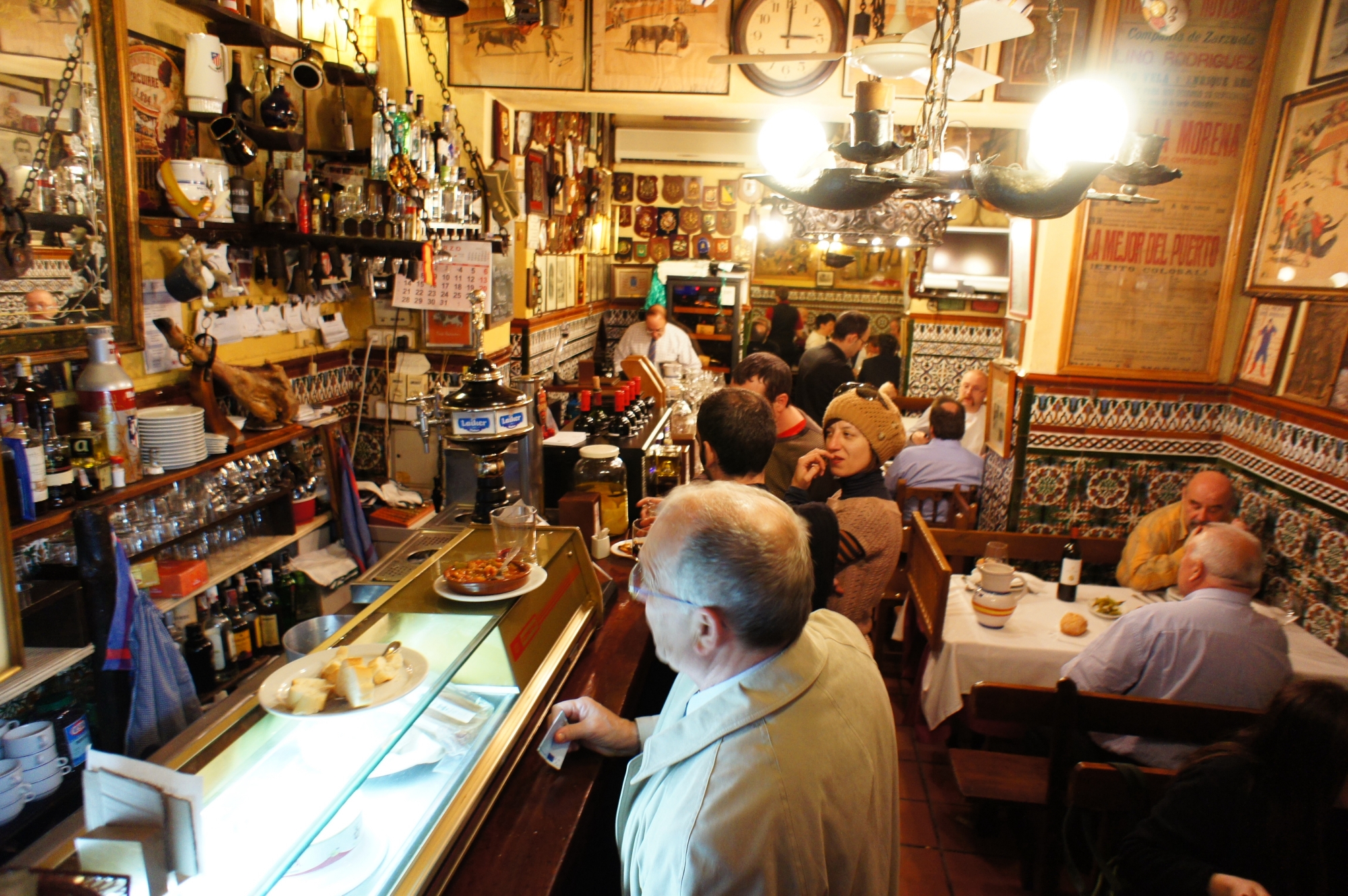 Nosaltres volem fer un petit tast del més típic de Madrid. Comencem pel bocadillo de calamares i fritura a bars com el Sol Mayor, al carrer de Postas, on els cambrers treballen a mil per hora.