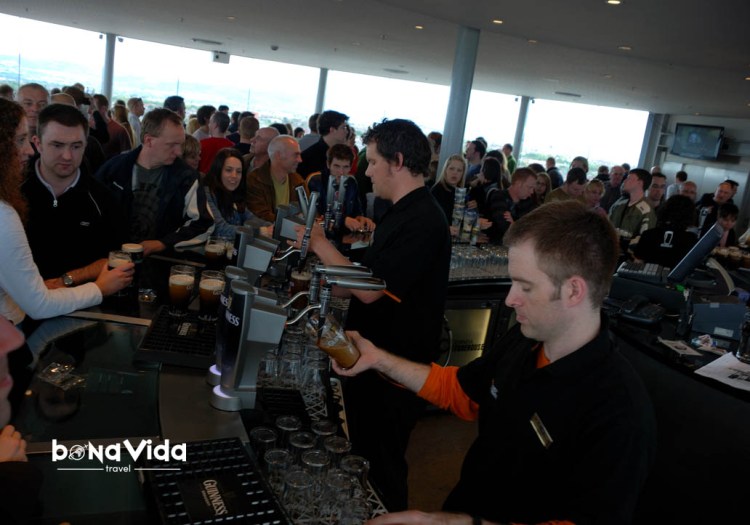 d’un antic però restaurat edifici, com es produeix la cervesa més famosa d’Irlanda. La visita, que no és excessivament cara, val la pena. A més d’aprendre algunes coses sobre la producció d’aquesta beguda, el final té una agradable recompensa: degustar una Guinness al Gravity Bar de la planta superior. Un mirador de gairebé 360 graus que ens permet observar la ciutat prenent una cervesa ben fresca…