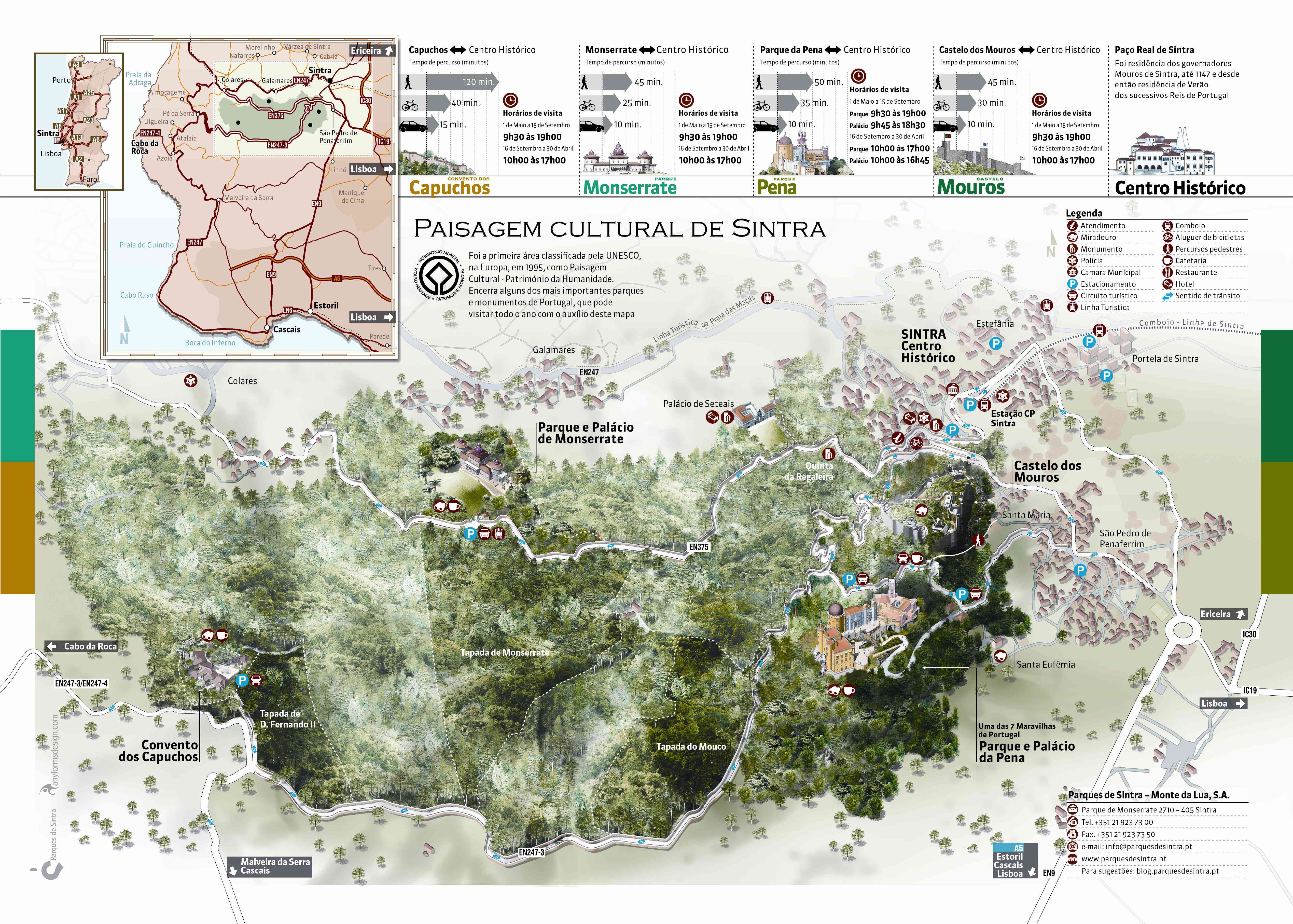 - El millor és informar-se a l’oficina de turisme de Sintra (Praça da República, 23), on ens explicaran les diferents visites que es poden fer al Parc i la millor manera de desplaçar-se.