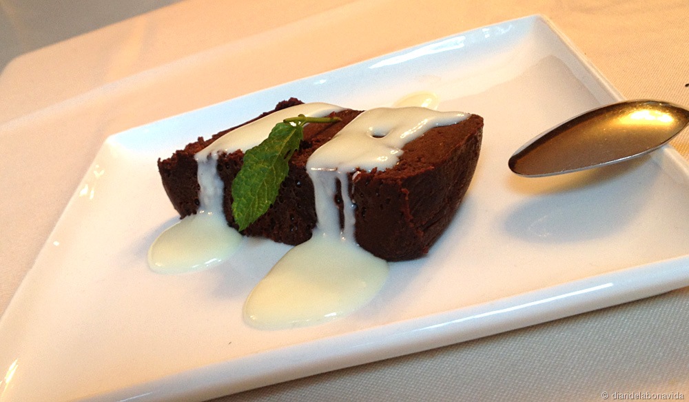 Les postres, totes casolanes, són boníssimes. Ens vam demanar un pastís de toffe de xocolata amb salsa de menta. Era bo, però molt contundent i embafava una mica. Destaca la tattin de poma, mató amb mel i codony, braç de gitano amb crema, pastís de formatge, crema catalana… Les postres estan entre 5 i 7 euros.