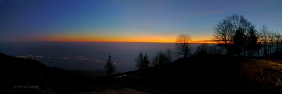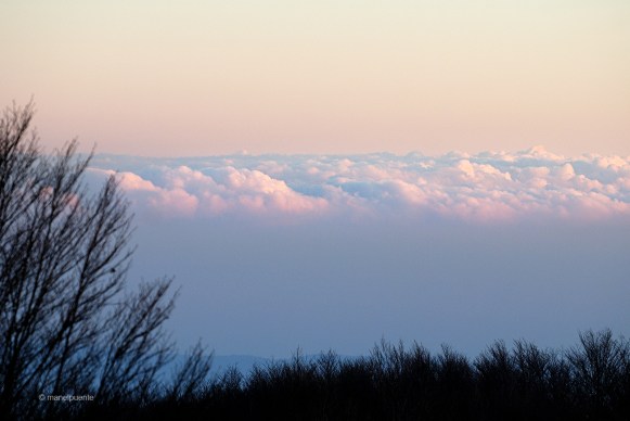 Finalment, ens trobem baixada la barrera que hi ha a l’ últim tram de la carretera. Allà si que hi ha uns quants centímetres de neu, i sense un bon 4×4 o unes cadenes ens és impossible continuar. Però no ens fa res, una capa blanca ens envolta i recordem que hem complert el nostre propòsit. A més, per arrodonir el dia, el cel ens regala una d’aquelles meravelloses postes de sol. Ens quedem fins que marxa pràcticament el darrer raig de llum. Després toca baixar per aquella carretereta estreta gairebé a les fosques, però ho fem amb un gran somriure a la cara. Som conscients que no fan falta moltes coses per ser feliç…