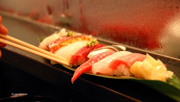 Normalment són locals molt estrets, sense taules, només amb una llarga barra on seure en tamborets. Però l’espectacle de veure com et preparen un bon plat de makis o nigiris davant teu és especial. Com que vam matinar molt per veure la subhasta de la tonyina, el sushi que vam menjar va ser, de fet, el nostre esmorzar. Mai més hem tornat a menjar peix cru a les 7 del matí, però encara recordem el sabor tant fantàstic que tenien aquelles peces.