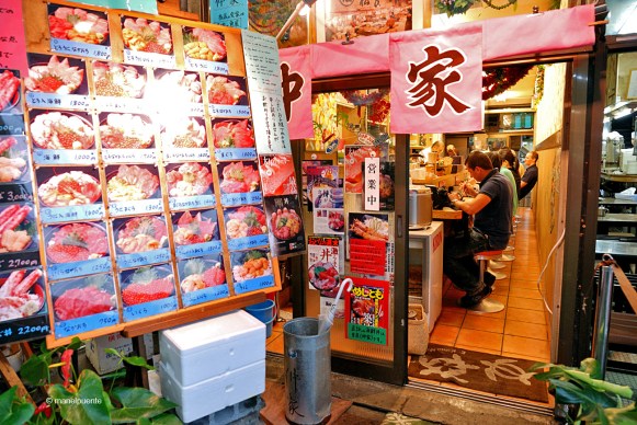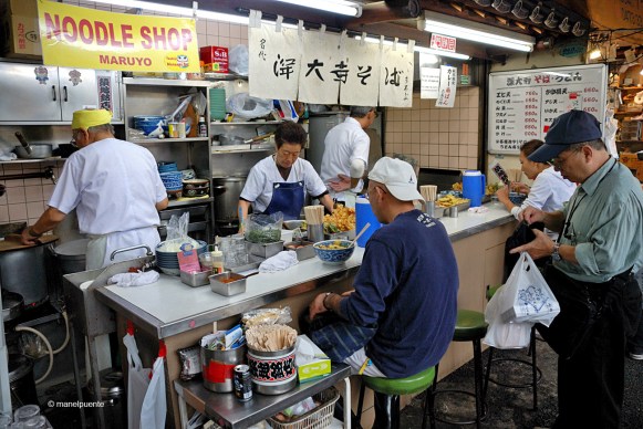I la tercera zona, que està mesclada amb la segona, seria la del menjar. A més d’algunes paradetes a l’exterior (algunes tan petites que només les composaven una barra amb una olla i dues cadires), trobem molts llocs per menjar el sushi més fresc de tota la ciutat.