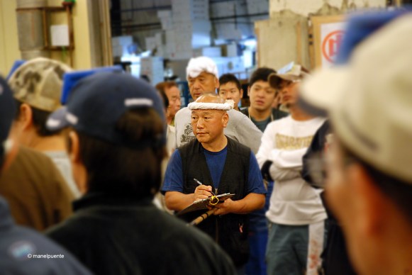 D’aquesta manera, més l’aspecte visual, són capaços de saber la qualitat de la tonyina. Llavors, quan arriba el moment de la subhasta, fan les seves ofertes en relació amb el que han pogut observar abans. Els crits dels encarregats de cantar els preus són tot un espectacle. No enteníem res, però els gestos i el vocabulari que feien servir ja eren tot un show.