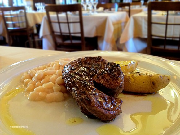 Filet de vedella amb mongetes i patates al forn