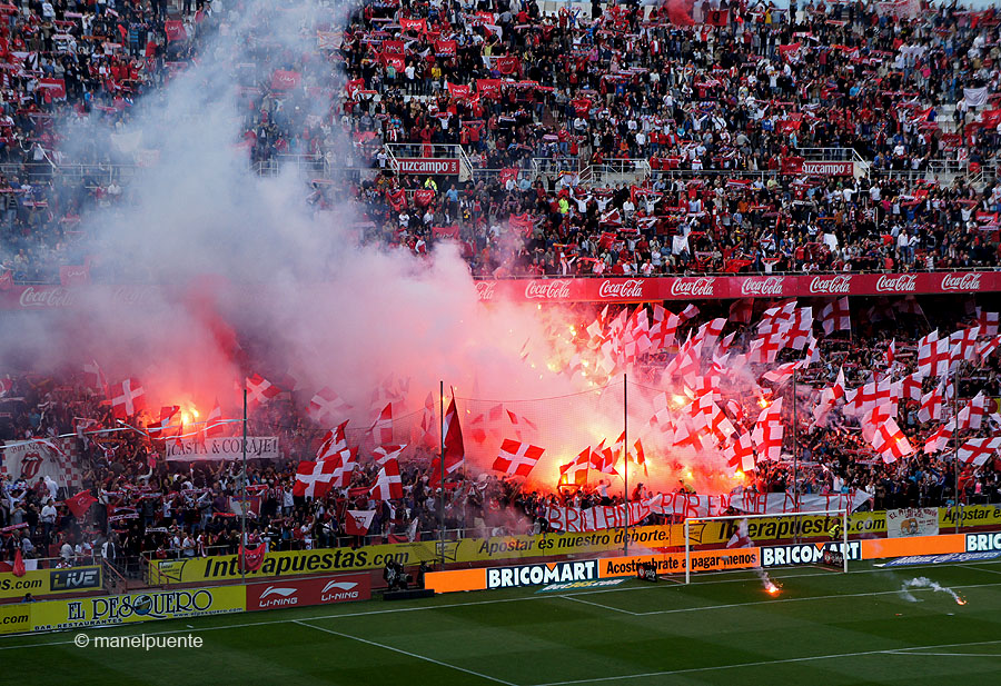 No cal dir que ens ho passem de conya voltant per la capital andalusa, menjant com dos “jabatos”, però això ja és text per una altra entrada al bloc (veure post gastronomia a Sevilla). El que ens interessa és parlar del partit, un partit únic i diferent, un partit especial. Com a tots els clubs de futbol, podem trobar de tot, alguns que no tenen dos dits de front i només saben “liar-la” i gent sana i correcte que vol veure un espectacle esportiu.