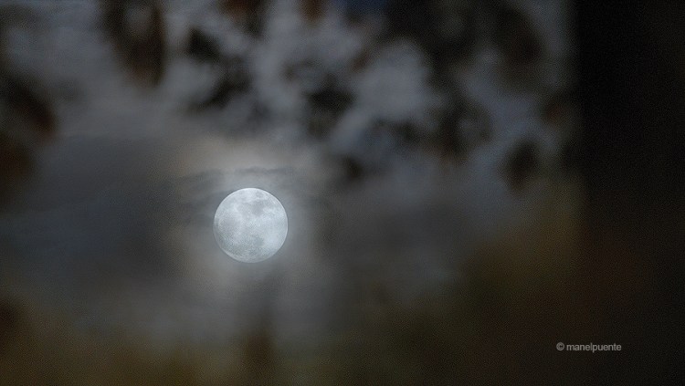 Em feia gràcia fer alguna foto del moment, però justament treballava aquest dissabte. Tot i així, tenia la càmera al cotxe i sortint de la feina vaig mirar cap al cel per intentar capturar aquesta lluna que semblava molt més gran. Feina difícil, ja que era massa tard, era negre nit, la lluna era molt alta i brillava tant que costava veure els cràters. Però no perdia res per provar, així que a mig camí vaig trobar una petita arbreda on podia entreveure la lluna entre les branques dels arbres i vaig disparar. Segurament el resultat és una mica sinistre, però tot i fer només dues fotos, ens fa gràcia compartir l’experiència al bloc…
