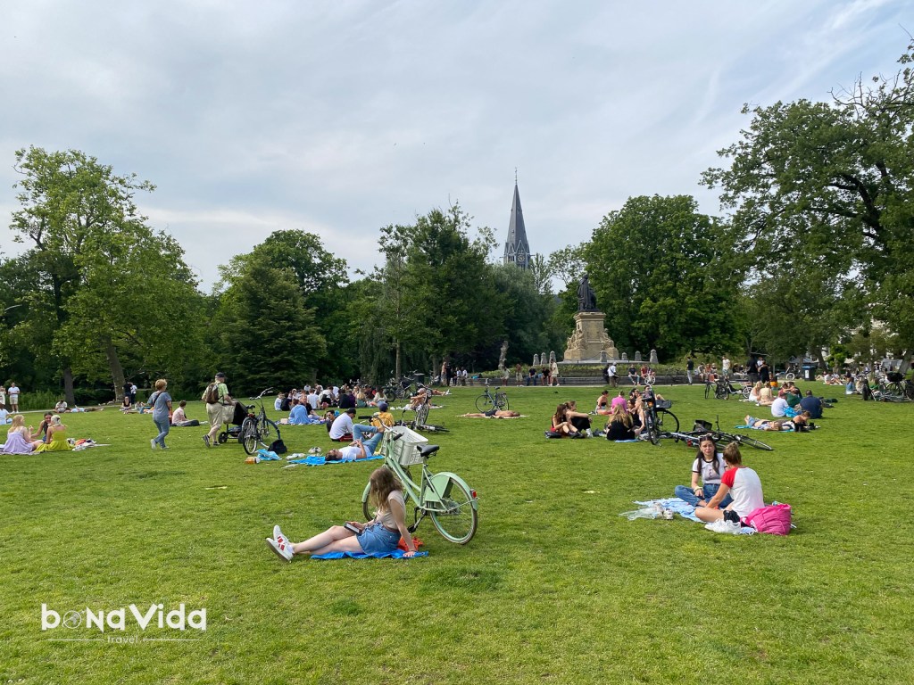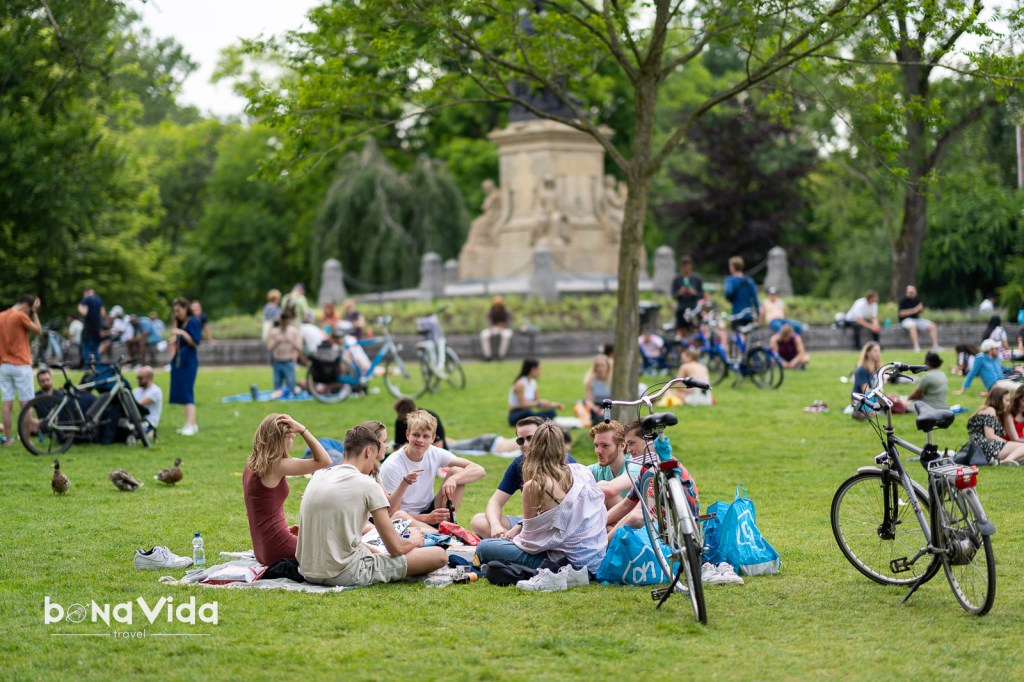 - Passejar per algun dels parcs de la ciutat. Un exemple, el Sarphatipark, on els dies de sol els grups d’amics es reuneixen per estirar-se a la gespa i les famílies juguen amb els seus fills, i sobretot Vondelpark, el gran pulmó verd d’Amsterdam.