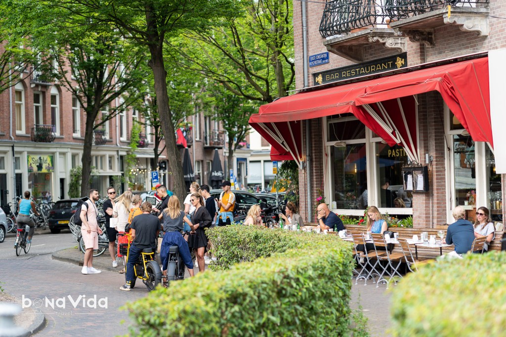 - L’Avinguda Leidsestraat i la Plaça Leidseplein, plena de terrasses amb bars, restaurants, cafeteries i joves.