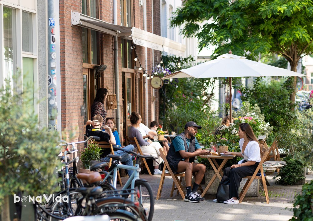 - Fer un berenar a la botiga de pastissos De taart van m’n tante. Fan uns dissenys únics, i a més són boníssims. Situada a Ferdinand Boolstraat davant trobem la plaça Marie Heinekenpleinamb molt d’ambient. Plena de bars i restaurants.