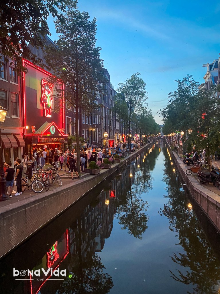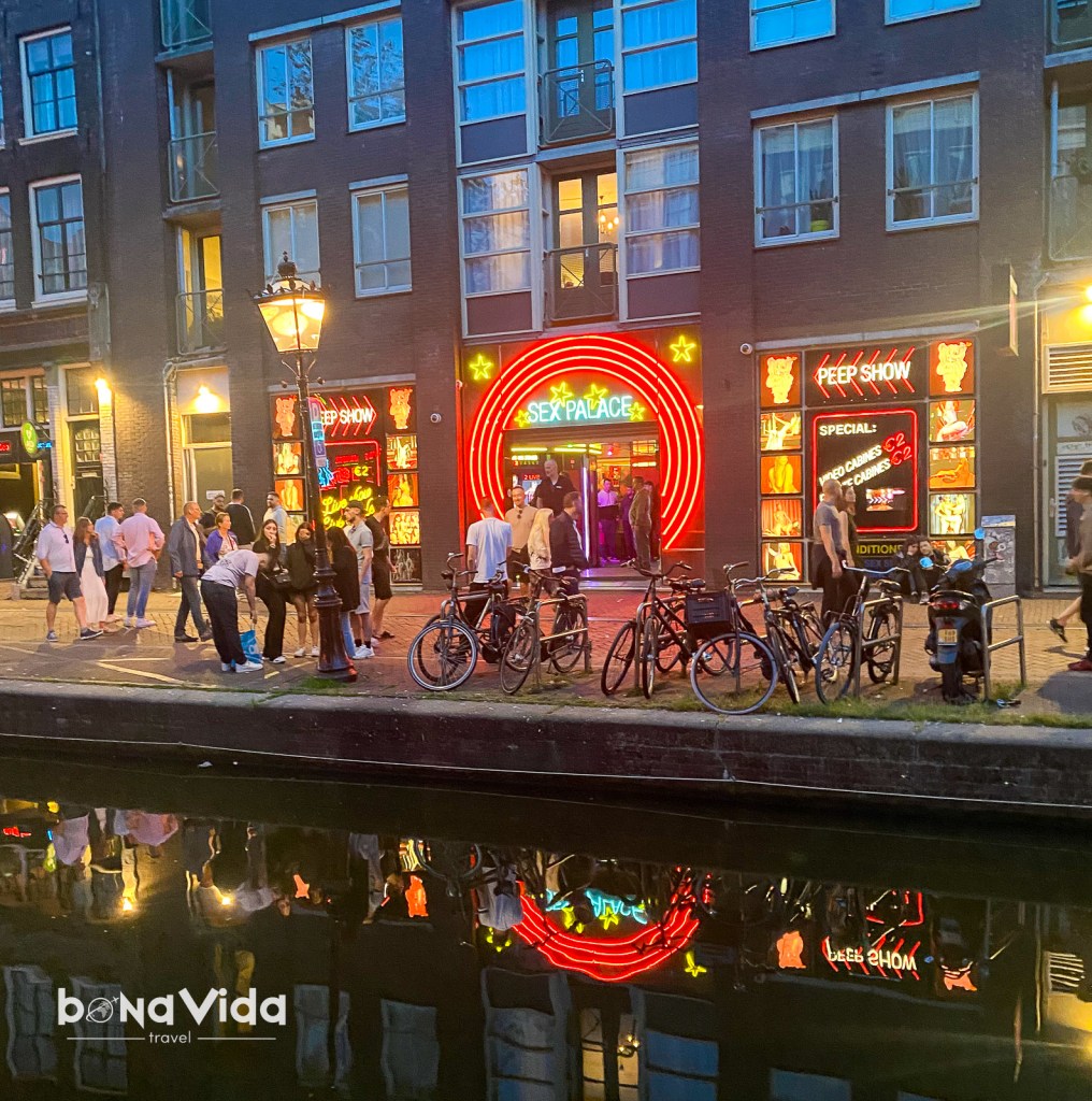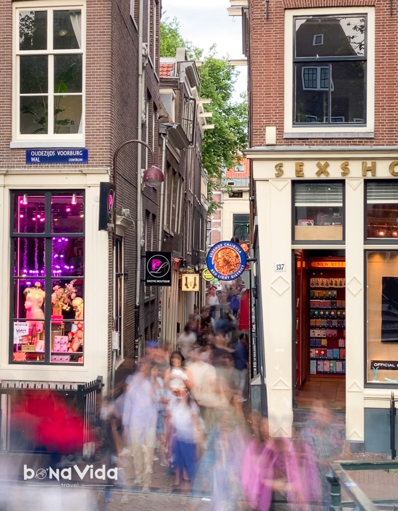 - El barri Vermell (Rosse buurt), amb molts restaurants, tabernes, cafeteries i locals de moda, plens d’ambient. I la seva zona “vermella” anomenada col·loquialment “The Wallen”, fent referència als molls (wall) dels dos canals que la creuen. Aquí és on les llums vermelles s’encenen al capvespre i les prostitutes s’exhibeixen en aparadors. Recordem que la prostitució està perfectament legalitzada en aquest país. (veure post)