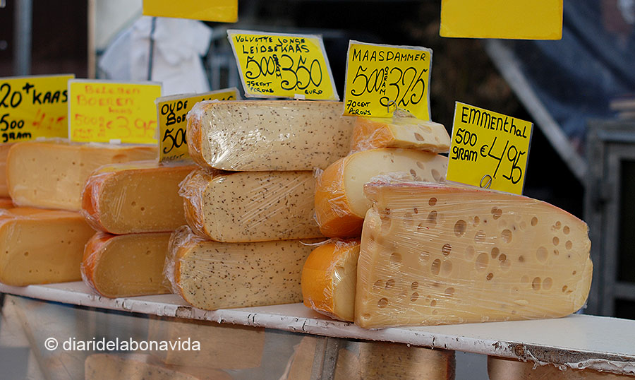 - Les botigues de formatges. Si ets fan d’aquest aliment, Amsterdam és la ciutat adequada per tastar / comprar. Existeixen moltes botigues especialitzades. Una de les que més ens va agradar, Kaashuis Tromp, tenen varies botigues a la ciutat. La del carrer Elandsgracht, 27 ens va encantar.