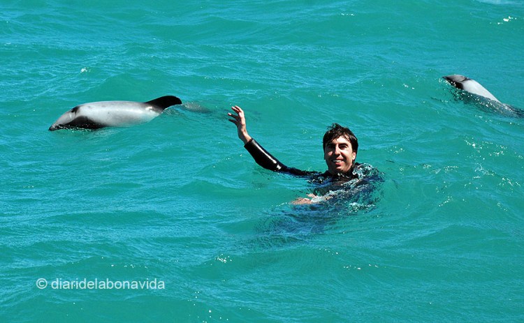 Aquests dofins Héctor, a més de ser més petits dels que estem acostumats a veure a les pel·lícules, es caracteritzen pel seu color gris platejat, però amb les aletes i una part del cap d’un elegant color negre. Les sortides per veure aquests animals la vam fer des de la bonica població d’Akaroa, on podem trobar diferents companyies que les organitzen. Ho tenen tot molt preparat, et donen un trajes de neoprè i en petits grups (com a màxim de 10 persones), et porten a nedar entre dofins. Existeix una gran diferència respecte a nedar entre els dofins comuns. Les tres principals són: