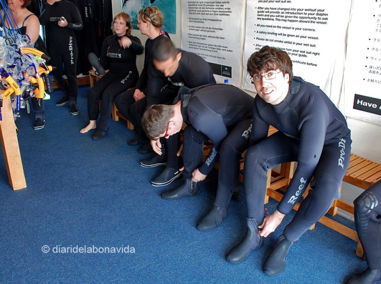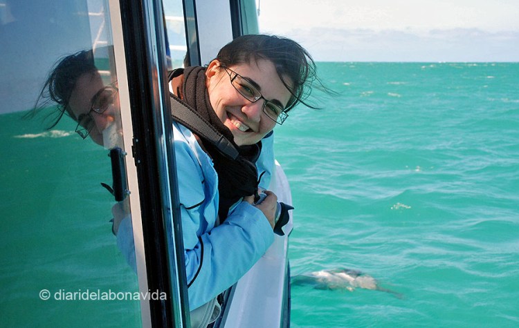 • Per nedar entre els dofins Héctor s’ha d’anar una mica mar endins. Nosaltres vam navegar fins a més d’un quilòmetre de la costa per trobar-ne. Més tard, durant la nostra ruta, vam veure altres excursions per nedar entre dofins que es podien fer gairebé al costat de la platja, però no eren dofins d’aquesta espècie. La veritat és que per persones com nosaltres que no som gaire de mar, nedar a mar obert (feia bastant fred i el mar estava mogut) és bastant impressionant.