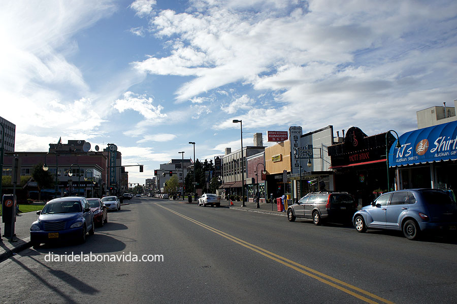 Sortim a fer una volteta i de seguida tenim la ciutat d’Anchorage vista. No és gaire gran i tampoc té res a especial per veure ni destacar.Típiques i amples avingudes americanes, parquímetres per tot arreu i un Down Town que és l’unic lloc on trobar una mica d’ambient.