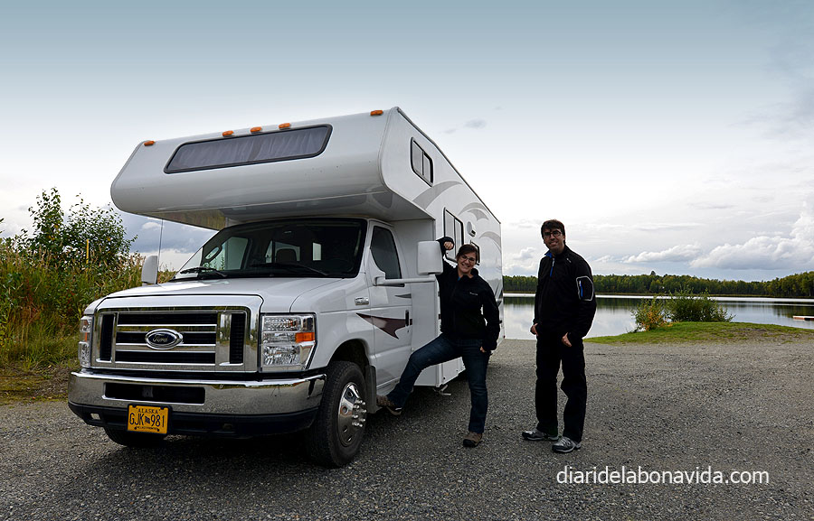 No pateixis Imma, intentarem fer un publi-reportatge de la nostra caravana. És genial! És molt gran per nosaltres, de fet és per 4-6 persones, però al ser temporada baixa a Alaska ens costa una mica menys, i volíem estar ben amples ( Fa més de 7 metres de llarg ).