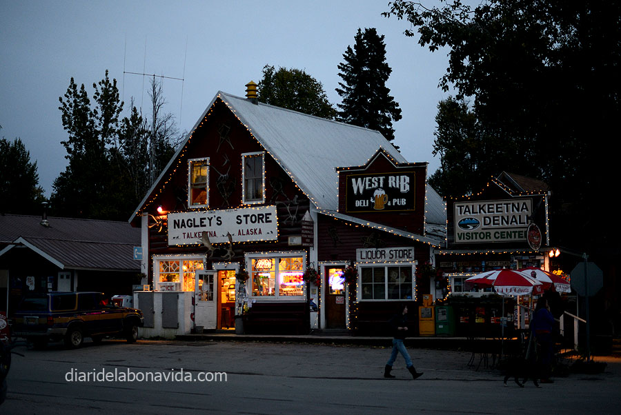 El poble de Talkeetna és ple de restaurants i bars (entenem ple per un simple carrer a una població de 1.000 habitans) i aprofitem per sopar una mica al Twister Creek Restaurant. Tot boníssim! En temporada alta això ha de bullir de més activitat, però a nosaltres ja ens agrada que no hi hagi tant de moviment.