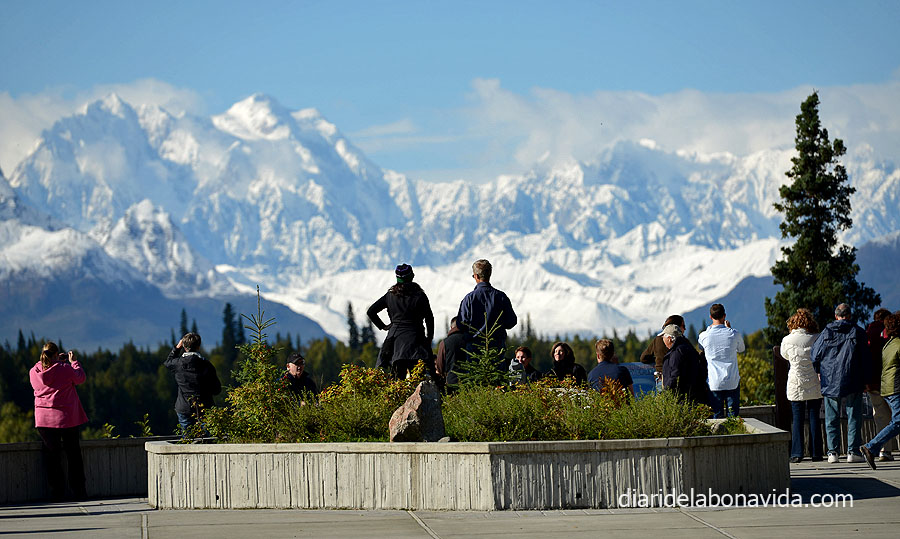 Doncs avui la seva visió ens ha acompanyat durant tot el recorregut. I la gent sembla que ho ha agraït. En un dels punts panoràmics de la zona, el Denali View South, hi havia un munt de persones gaudint amb la imatge dels principals cims d’aquesta serralada. Quina visió!