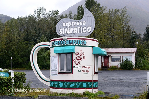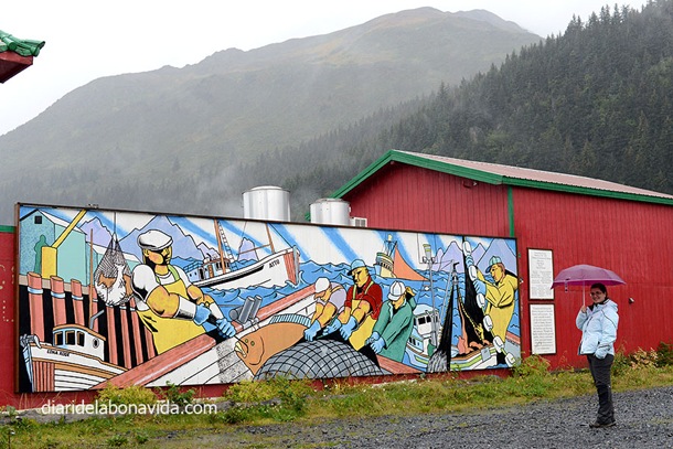 El deixem al costat de la seva tenda de campanya, a un càmping de Seward, i ens agraeix mil vegades la nostra ajuda (tranquil·les mares, ningú ens ha raptat!). Aprofitem que tenim la caravana aparcada per visitar la ciutat. Un carrer principal amb els restaurants i botigues i el port a un costat. Entrem a dinar alguna cosa light a Ranting Raven, una mescla de botiga/pastisseria/cafeteria.