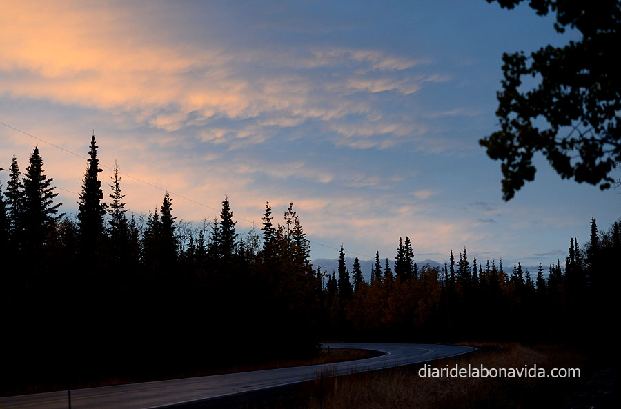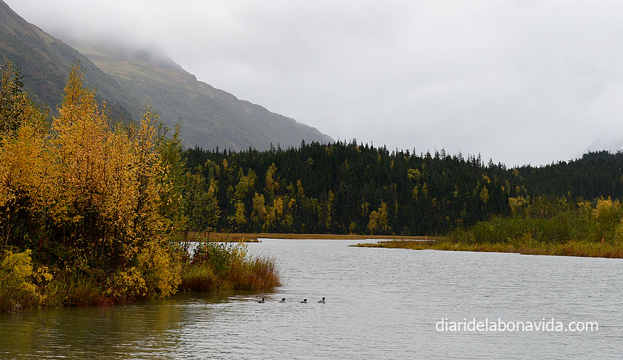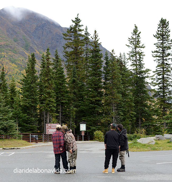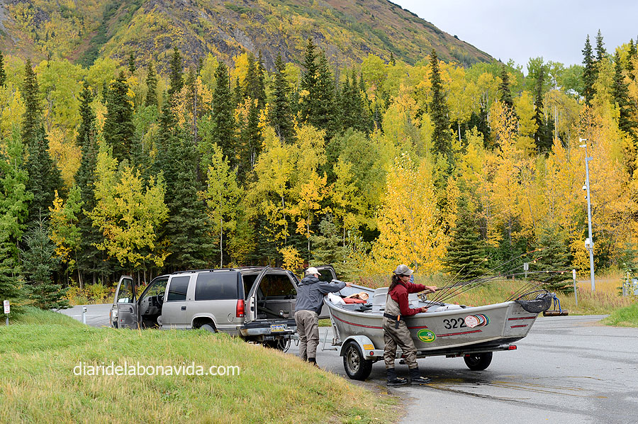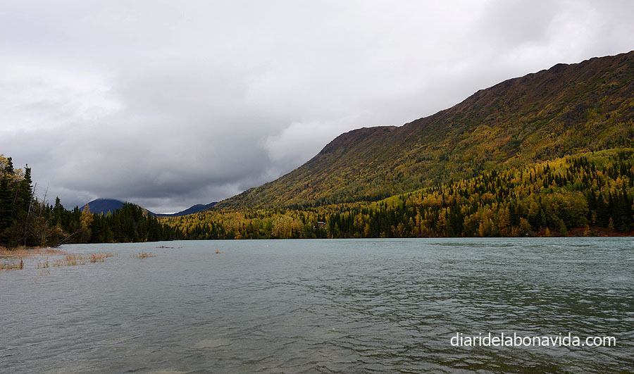 Agafem la Sterling Hway, una carretera molt maca. Tornem a gaudir dels colors dels arbres, el rius i els llacs, com per exemple el Tern Lake. Suposem que és l’hora de plegar pels pescadors, ja que veiem un munt recollint estris a les vores del riu Kenai, amb unes meravelloses aigües turqueses. Ens costa molt decidir on parar, on seguir, on girar… No perquè no ens agradi el que veiem, sinó tot el contrari. Volem veure-ho tot, i descobrir tots els racons. I si girem per aquí…? I si agafem aquest caminet…? I si…?