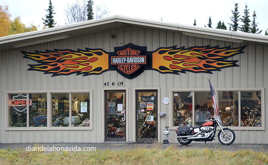 Al vespre arribem a la ciutat de Soldotna. Com totes les d’Alaska, a l’entrar trobes les benzineres, i botigues genèriques (McDonald’s, Subway, Tacobell, concessionaris de cotxes, restaurants…). Nosaltres parem a una de ben curiosa: “The moose is loose”. Una barreja de pastisseria i botiga de regals, relacionats amb el Moose, (els alces). La Cristina ha gaudit com una boja; samarretes, pijames, gorros, adhesius, pins, clauers… de tot amb la cara d’aquests animals.