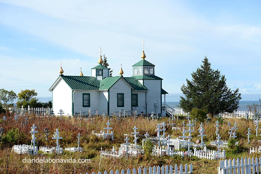 La ruta d’avui promet. Un altre punt pintoresc: l’església Ortodoxa Russa i el cementiri que té al costat, a tocar del petit poble de Ninilchik. Ens acostem a la Old Village (la part antiga) d’aquest poble, un singular enclavament, on la comunitat russa es va establir quan Alaska pertanyia a Rússia. Sabien el que es feien. Segur que passaven molt de fred, però quines vistes que tenien…