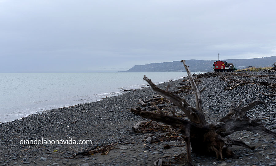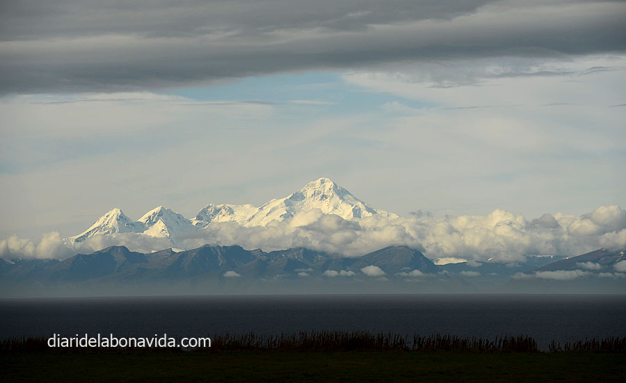 La següent parada, continuant per Sterling Road, ha sigut a Clam Gunch. Des d’una zona d’acampada pots baixar fins a la platja. La visió és fantàstica. Un petit riu arriba fins al mar. La marea baixa ens ha permès una llarga passejada, i tota l’estona ens ha acompanyat la visió perfecta dels volcans Redoubt i Iliamna com a fons.