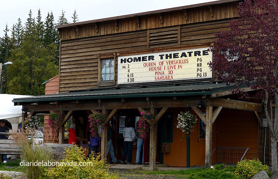 Enfilem carretera fins arribar a la turística ciutat de Homer. Bé, tornem a dir-ho, turística deu ser a l’estiu, perquè ara són 4 gats. Però trobem diferents restaurants, botigues i serveis oberts. Comencem entrant a l’oficina d’informació. Allà ens expliquen què fer i veure a la ciutat. Intentem cremar un últim cartutxo d’excursió: contractar un vol amb avioneta per arribar al Parc Nacional de Katmai, ja que no hi ha carreteres. Volem veure més óssos. Però la majoria d’empreses (i n´hi ha moltes) ja han tancat, i les que queden no volen perquè la previsió del temps no és clara. Què hi farem! La part bona és que ens estalviarem els 1.200 dòlars que costa l’excursió!