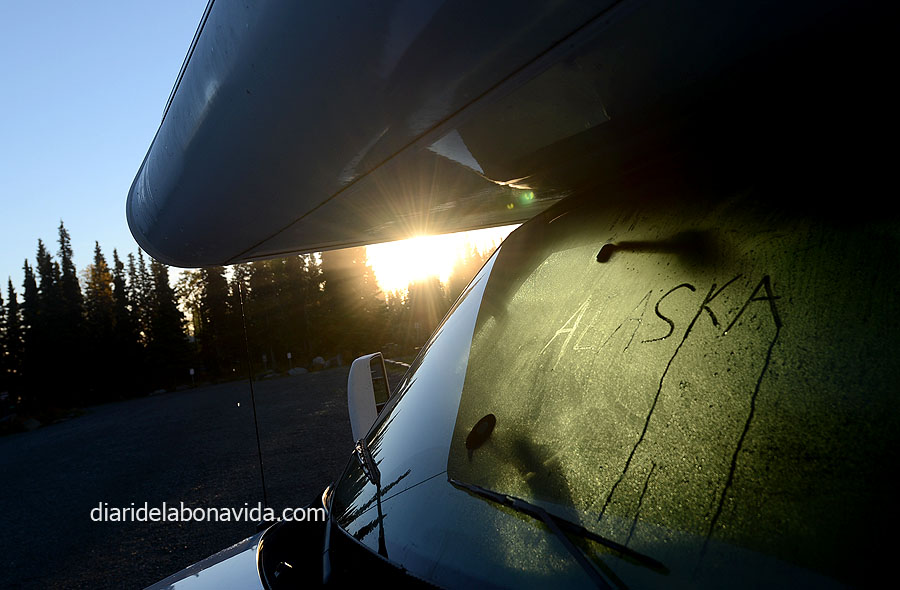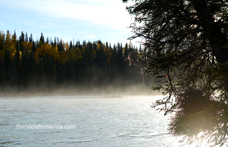 No era el lleó tan ferotge com pintava. Hem passat la nit sense saber ben bé on havíem anat a parar, i amb la sensació d’estar perduts. Però aquest matí el dia ha començat esplèndid, i hem vist que havíem acampat a Crooked Creek State Recreation Site, al costat del riu Kasilof. Hem aprofitat per estirar les cames i fer una volteta.