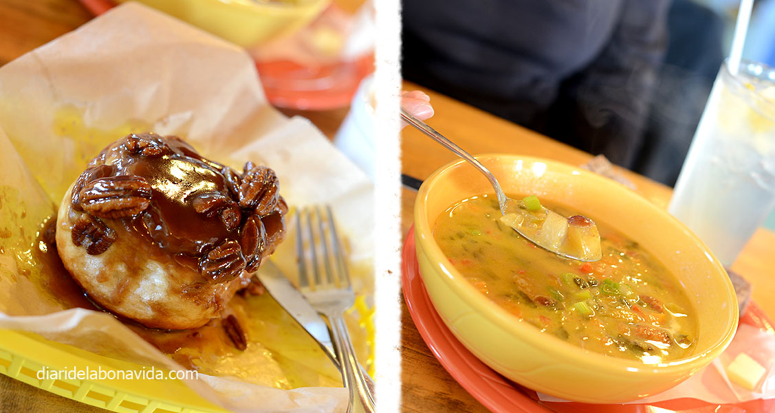 Però bé, hem repetit a la nostra bakery preferida de Homer, la Two Sisters. Jo (Cristina) he menjat una fantàstica sopa marroquina amb pollastre i verduretes i el Manel, per no perdre el costum, ha demanat una super marranada de les seves, amb sucre a tope, que es deia “Sticky Ban”, o sigui, “Enganxifós prohibit”. Us podeu imaginar què tal era!