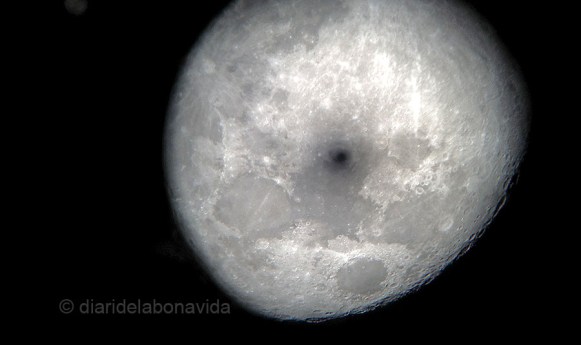 Així es veu la lluna fotografiada amb el mòbil a través del visor del telescopi