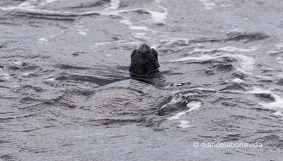 Finalment aparquem i fem una petita caminada fins el mar. No hi ha molta gent, i ens acomodem sota una petita ombra, davant d’una zona on no hi ha gaire pedres a l’aigua. Perfecte per fer el primer “chapuzón” del dia. L’aigua està boníssima i a sobre, ens acompanyen unes quantes tortugues marines. Ens passen ben aprop mentre nedem!
