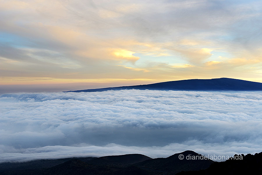 El mar de núvols sobre Big Island ens va acompanyar durant la pujada al Mauna Kea