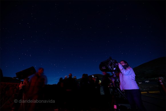 A més, diferents telescopis permeten admirar de més aprop les meravelles del nostre firmament. Nosaltres vam estar una bona estona escoltant les explicacions i mirant estrelles llunyanes. Ah, i la lluna… Espectacular! Això sí, és més que recomanable portar una bona jaqueta, perquè la nit allà dalt és més que freda!