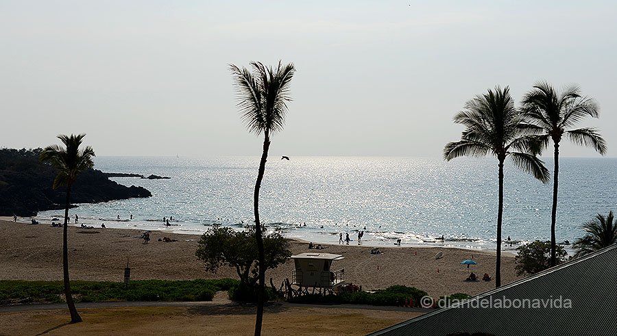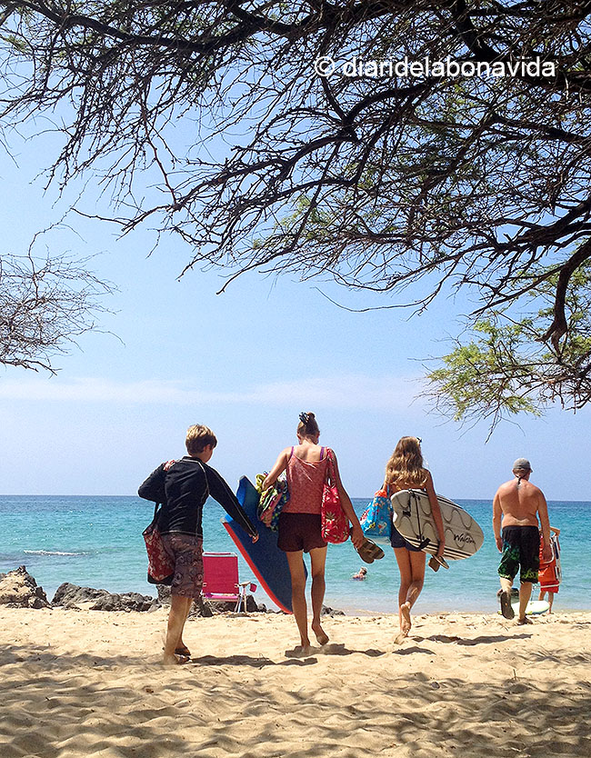 Des d’allà mateix, agafem la Old Puako Road direcció a Waialea Bay Beach, coneguda pels seus habitants com Beach 69. És una platja familiar, amb un pàrking enorme per poder deixar el cotxe. A més, ens vam adonar que, si tries la platja de la dreta és on es troben les famílies amb els nens i està una mica pleneta. Però si vas a l’esquerra, no hi ha gairebé gent i tot és molt més tranquil.let. Ens fem una banyadeta i quan ens entra la gana, dinem sota l’ombra el que hem comprat al Queens’ Market Place, on hi ha un supermercat amb menjar per emportar.