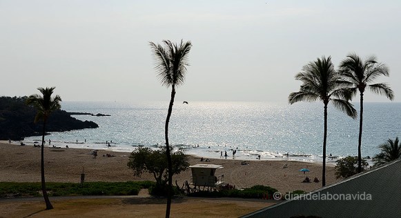 Continuem la nostra cerca de platges per la costa oest de Big Island i anem a parar a la que diuen és la platja més maca de l’illa, Hapuna Beach. Home, és maca pel seu entorn i perquè té unes zones ajardinades, però no té res més d’especial… El que és molt divertit són les onades, cada vegada més grosses, que hi ha al mar. Ens posem a jugar com uns nens petits i ens ho passem pipa!