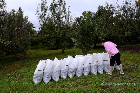 Arribem a Hilo i busquem el nostre hotel, seguint les indicacions que hi havia a la seva web. Hem triat The Inn at Kulaniapia Falls (veure la nostra opinió a Tripadvisor i situació al mapa), que com el seu nom indica, està a tocar de la cascada Kulaniapia. Fem uns quants kilòmetres abans d’arribar-hi, travessant un camp enorme d’arbres de macadàmia. Hem de dir que per tota l’illa n’hem vist moltíssims, perquè és un fruit molt conreat i conegut a Hawaii. A més, trobem tot de sacs plens de macadàmies acabades de recollir. Tot just ara és la temporada!