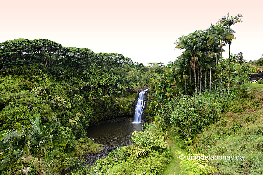 Comencem a encarar cap a la ciutat de Hilo, la capital, ja que avui dormirem a prop de l’aeroport per agafar el vol demà al matí, ben d’hora. Tornarem a canviar d’illa. Pel camí, parem a Waimea, en un centre comercial molt maco per comprar alguna cosa per beure. Continuem per la carretera 19, cap al nord, i trenquem per la Hawai’i Belt Road, vorejant la Hamakua Coast. És una carretera amb bones vistes de la costa i “boscos” de palmeres que creiexen moooltíssim cap al cel en zones de molt difícil accés. Aquí hi plou força i les palmeres ho noten, i molt!