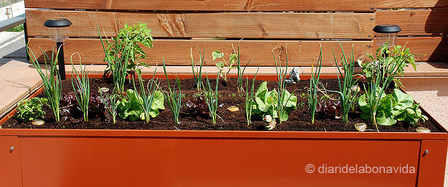 Nosaltres ja fa 4 ó 5 anys que tenim una taula de cultiu a la nostra terrasseta i estem la mar de contents! Vindria a ser un test en gran, amb potes, on cultivar vegetals és sorprenenment senzill. Només necessites un bon sustrat o terra, sol i aigua. I els vegetals, és clar! Pots sembrar llavors o bé comprar planter, que és la planteta una mica crescudeta, i només cal que la trasplantis al teu test i esperis que creixi i estigui a punt per menjar-la!