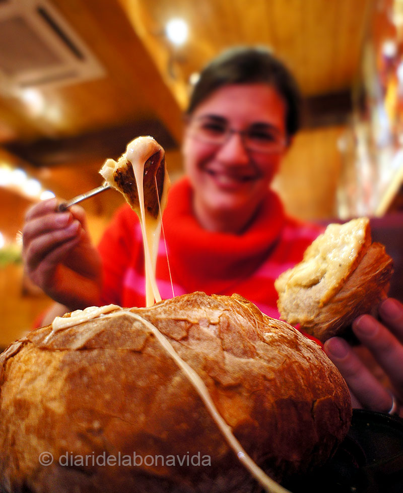 Nosaltres ja no esquiem pero som capaços d’anar a Andorra tan sols per menjar aquesta fondue de formatge dins del pa de pages… mmmmmmm…